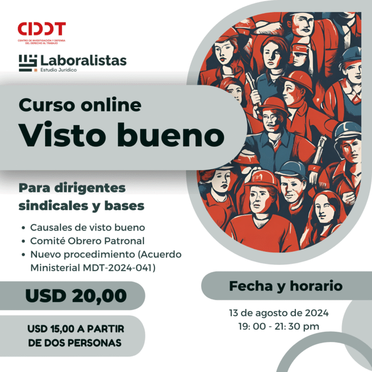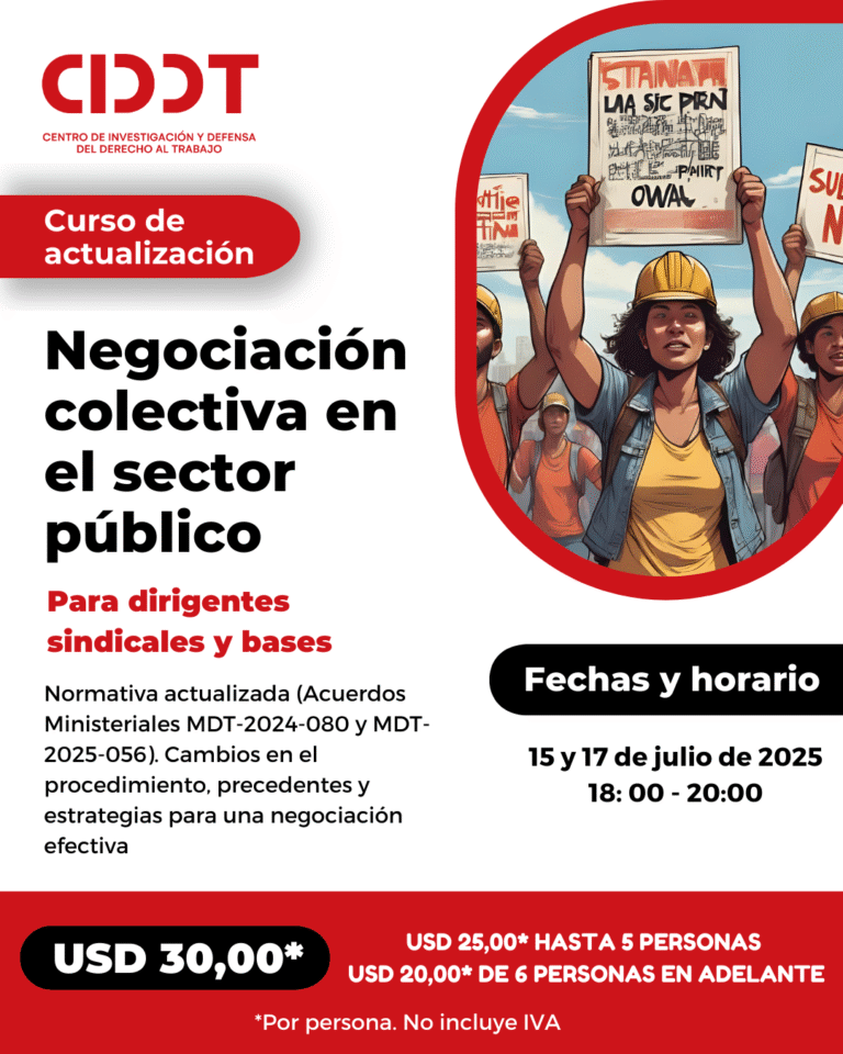 El CIDDT es una organización de abogadas laboralistas comprometidas con la justicia laboral y social en Ecuador. Defendemos los derechos laborales y sindicales para transformar las condiciones de trabajo en Ecuador, la región y el mundo.